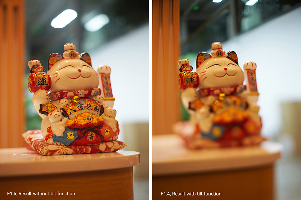 When taking pictures, we often encounter the need to only make some areas clear and other areas blurred. For example, for the lucky cat, if you want its face to be clear, and the torso to be blurred. If a regular lens is used, since the face and the torso are in the same focal plane, the face and the torso will stay clear at the same time. But using a tilt-shift lens can meet this need without changing the aperture, and making photos more artistic.
