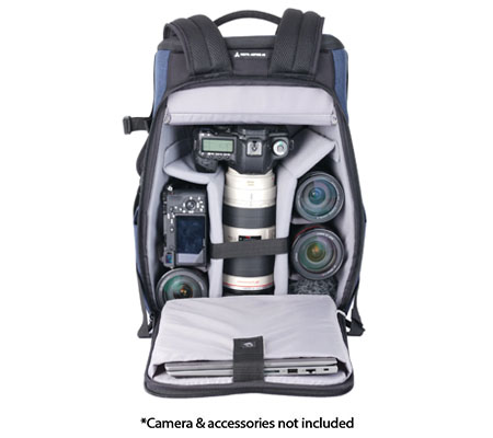 The VESTA Aspire 45 is the ideal compact, lightweight and stylish daypack for a full frame camera with 70-200mm lens attached, 4-5 additional lenses, flash, a 14" laptop, accessories, a travel tripod and personal essentials such as wallet, phone, water bottle. It also includes a removable daypack section for personal kit.