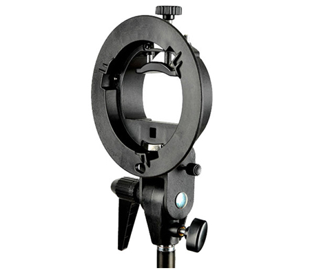 The S-type bracket is compact in its construction and requires no pre-assembly, so it is always ready to go. For adjusting the light direction, the bracket can be rotated and also tilts 90° front and back. Finally, a hole can be found at the bottom for installing an optional umbrella or other accessory. Included with the product is a 15.7 x 15.7" collapsible softbox for soft and even lighting, and a carrying bag for easy transport.