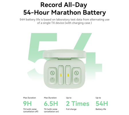 Delivering pristine 48 kHz/24-bit high-fidelity audio, the LARK A1 captures every nuance with precision. Its 3-level intelligent noise cancellation effectively reduces ambient sound, ensuring clear and natural audio. Users can further tailor their sound with adjustable EQ, reverb, and 6-level gain control, while the intelligent auto-limit function maintains consistent volume levels and prevents distortion. The clip-on mics feature a sleek, low-profile design, weighing just 0.3 oz, and offer flexible placement via hidden magnetic attachments. Thanks to the included charging case, the transmitters can be swapped on the go, enabling up to 54 hours of uninterrupted operation.