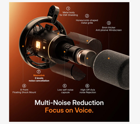 Eliminate echoes, background noise, and keyboard noise to keep your audience focused on you.