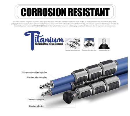 It is designed for use in harsh, wet environments. Made with 10-layer carbon fiber leg tubes and titanium components, it provides excellent corrosion resistance and makes it suitable for use in a variety of conditions. The tripod also features twist-lock joints that repel water, sand, and debris, which helps to minimize the need for maintenance. The LP series tripod features a fixed, compact apex.