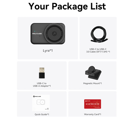 The Lyra webcam adopts the latest LARK A1 wireless microphone solution. Thus, the built-in microphone in the webcam boasts a powerful 48 kHz/24-bit audio recording ability. Great for meetings and live streaming because the recording audio will sound really natural, just like the mic is close to the speaker's mouth.