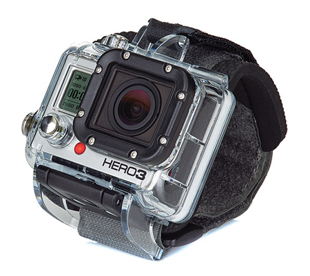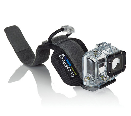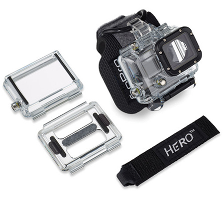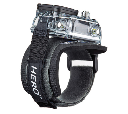 The GoPro Wrist Housing for HERO3 / HERO3+ / HERO4 secures your camera like a watch flat against your wrist. Whenever you want to capture a photo or shoot some hands-free action video, you can quickly pivot the camera upright and start recording. The Wrist Housing allows you to keep both hands free and you can even strap it to a variety of sports gear and equipment like kayak paddles, kitesurfing kites, and so on. For enhanced flexibility, an adapter is included that allows the Wrist Housing to fit over bulky gear like ski gloves or a winter jacket. Plus, you can even use the Wrist Housing down to a depth of 197' since it features a GoPro Dive Housing.