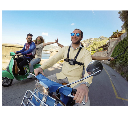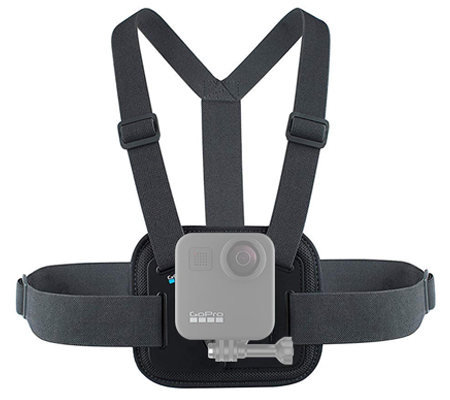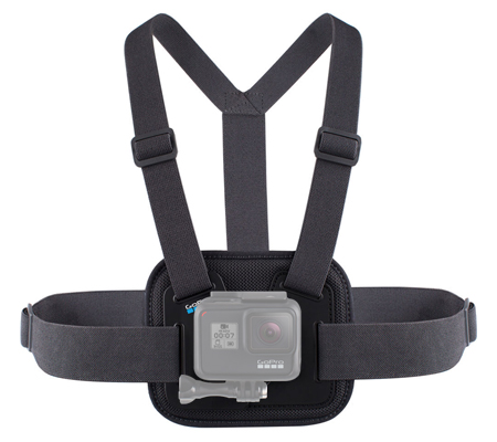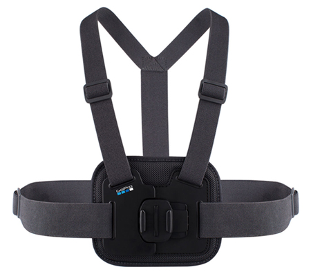 The GoPro Chesty (Performance Chest Mount) has a padded design that lets it sit more stably and comfortably on the chest, and it's also made with breathable materials that further add to the comfort aspect. The Chesty features a standard 3-prong mount and allows you to capture hands-free POV shots with GoPro cameras in nearly all activities, including high-performance activities such as skiing or motorbiking. You can also mount a GoPro Karma Grip onto the 3-prong mount by using the Mounting Ring that comes with the Karma Grip. The Chesty is adjustable to fit most body types as well as over heavy winter coats. It secures on using a quick-release buckle that's easy to handle even with gloves on.