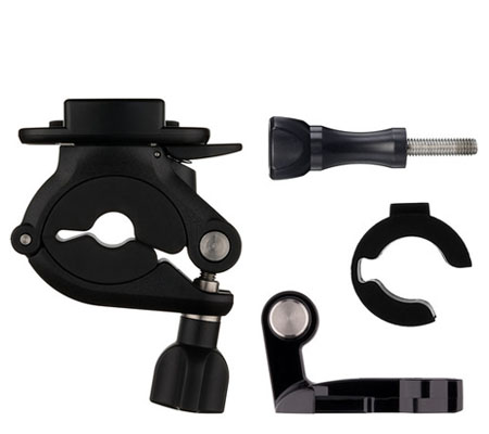 Now compatible with the mounting buckle, GoPro's Handlebar / Seatpost / Pole Mount lets you quickly attach your camera to small tubes ranging from 0.35 to 1.4" in diameter. Two rubber inserts are included ensuring a secure fit and minimizing vibrations from bumpy trails or other impacts. Once the camera is clipped to the mount, it can be rotated 360° for precise framing. Sixteen position detents hold the camera steady, regardless of orientation.