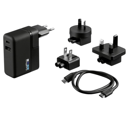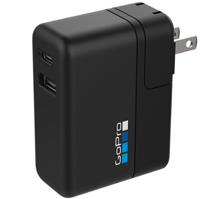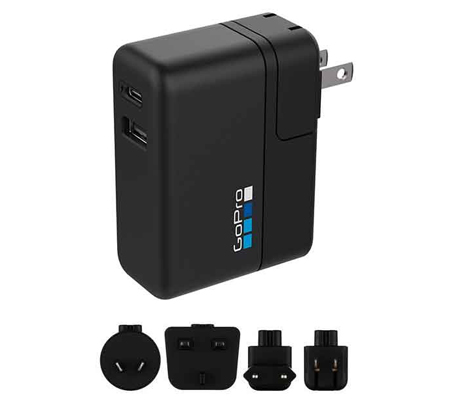 Charge two USB devices at once nearly anywhere in the world with theĀ GoPro Supercharger. Featuring dual USB outputs, one Type-C and the other Type-A. GoPro devices compatible with USB-C rapid charging, including the HERO5 Black, HERO5 Session, Dual Battery Charger, and Karma Grip, get an extra boost while charging through the USB-C port for 20-70% faster charging times (compared to a 5 volt, 1 amp output) when used with the included USB-C cable. The USB Type-A port is compatible with most devices, including current as well as legacy GoPro equipment, and outputs 5.1 volts at 1.5 amps. Both USB outputs are simultaneously active for multi-device charging.