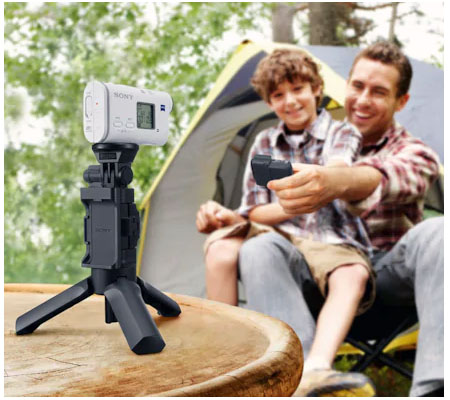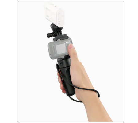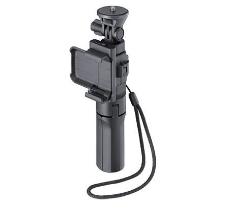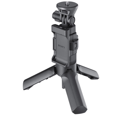 The VCT-STG1 Shooting Grip from Sony is a combo handgrip and mini tripod designed for use with all Sony Action Cam models. It provides improved stability for handheld shooting, and features a tilt-adjustable camera platform for shot angle adjustment and comfortable handling. You can attach an optional Live-View remote with a mounting clip, enabling one-handed camera operation and control. For added convenience and versatility, the handle folds out into a mini tripod for stable static shots. A wrist strap is included.