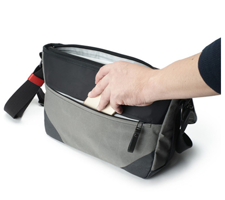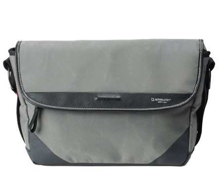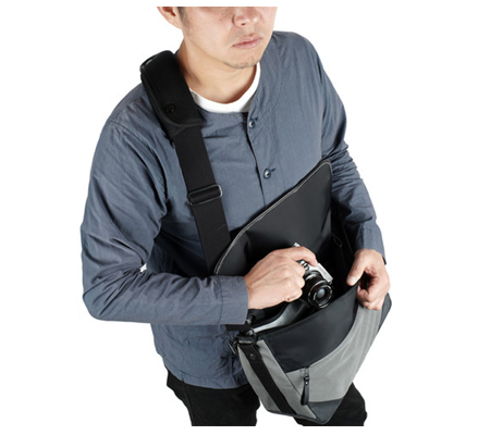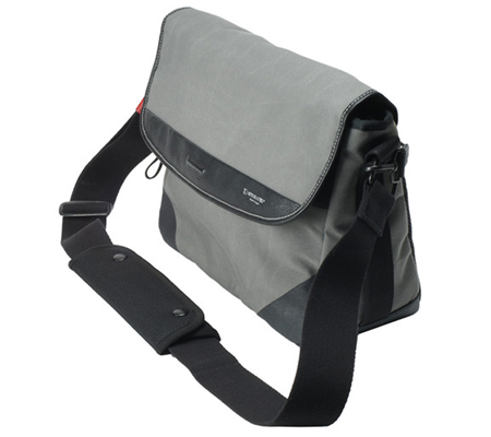 Comfortably transport, store, and protect two mirrorless cameras, a standard lens, a flash,, an iPad, and related accessories in the gray ACAM-9000 Camera Shoulder Bag from Artisan & Artist. The bag is made in Japan, and features acrylic canvas with leather accents, a front accessory zip pocket, and padded touch-fastening inner dividers for organizing gear. Carry the bag with the removable handle, or wear it with the adjustable padded shoulder strap.