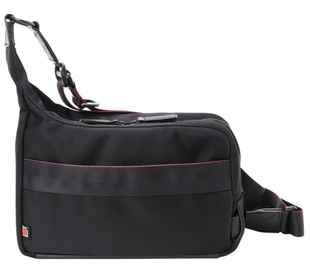 The front of the bag features a zippered pocket suitable for storing memory cards, a microfiber lens cloth, and business cards. On the back of the bag is a slip-in pocket for your cellphone or other small item. For strength, durability, and style, the bag is made of nylon and leather. In low light, the red and green interior linings make locating your gear easier. Zippers feature leather zipper pulls for faster access. Polycarbonate coated nylon is used to reinforce the bottom of the bag for added water and scuff protection.