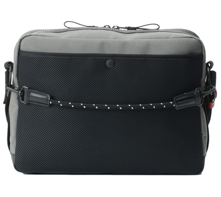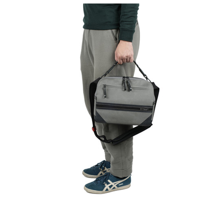 Comfortably transport, store, and protect one DSLR camera, three lenses, an iPad, and related accessories in the gray ACAM-9300 Camera Shoulder Bag from Artisan & Artist. The bag is made in Japan, and features acrylic canvas with leather accents, a front accessory zip pocket, and padded touch-fastening inner dividers for organizing gear. Carry the bag with the removable handle, or wear it with the adjustable padded shoulder strap.