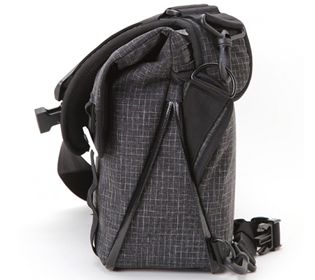 It can store a single lens reflex camera (middle model) and two additional lenses inside. A 10mm thick inner case securely protects the camera and accessories. The inner partitions are fastened with Velcro tape, making it easy to detach them and customize the inner case to suit the camera and accessories. An additional waterproof YKK zipper on the rear side makes it easy to access the main compartment. The bag has a pocket fitted with cushioning which can hold a laptop up to the size of 13 inches.