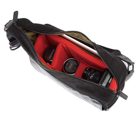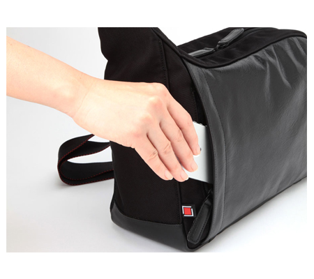 Store, protect, and transport a mirrorless camera, up to three lenses, related accessories, and an iPad with the finely crafted, black RR4-05C Camera Sling Bag from Artisan & Artist. Gear is stored in the removable, padded insert with matching, touch-fastening dividers. Use the bag as an everyday bag by simply removing the insert. This versatile bag is made in Japan and has an inner pocket, exterior, rear slip-in pocket, and a stash pocket behind the leather front. Store your iPad or other tablet next to the insert. Soft mesh fabric on the rear of the bag provides added comfort. The Easy Slider Shoulder Strap features one-finger length adjustments. Water-repellent nylon construction helps protect gear from inclement weather.