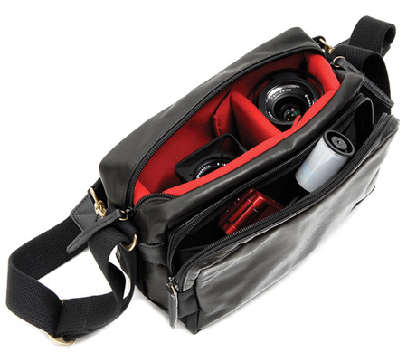 Elliot's Everyday Camera Bag from Artisan & Artist holds one Leica or similarly sized compact camera body, two lenses, and a flash, all while maintaining a small form factor. A spacious zippered front pocket provides ample room for film, a small notebook and pen, filters, or a small handheld meter.
