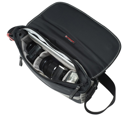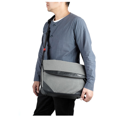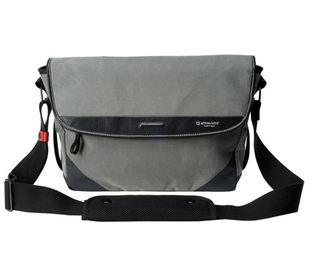Comfortably transport, store, and protect two mirrorless cameras, a standard lens, a telephoto lens,, an iPad, and related accessories in the gray ACAM-9100 Camera Shoulder Bag from Artisan & Artist. The bag is made in Japan, and features acrylic canvas with leather accents, a front accessory zip pocket, and padded touch-fastening inner dividers for organizing gear. Carry the bag with the removable handle, or wear it with the adjustable padded shoulder strap.