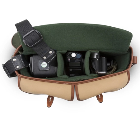An upgraded version of our popular, Hadley Pro Camera Bag. Fits most DSLRs (without a battery grip) or almost any mirrorless camera and 2-4 small-to-medium sized lenses with accessories (inc 70-200mm lens not attached to the camera). Made in England with 3-layer waterproof fabric and real leather. REMOVABLE PADDED INSERT The flexible padded insert is made from dense, fabric covered, 'closed cell' foam and provides impact protection on all sides, including the lid. Like the bag itself it is flexible front-to-back to allow it to fit slightly bigger gear than its dimensions suggest. 2x vertical dividers and 2x horizontal flap dividers are included and can be attached anywhere inside with Velcro®. The padded insert can also be removed to turn the bag from a camera bag to a casual messenger bag in seconds. FRONT DUMP POCKETS The front dump pockets are perfect for cables, film, spare batteries and those little bits and bobs you want to keep separate, whilst providing great extra storage space. On the top-outside corner of each pocket is a pop-clip. Release this to expand the space available. Keep it closed to form a perfect place to clip pens, pencils etc. TOP HANDLE AND BACK POCKET An easy carry top handle is reinforced with fibreglass and has leather on the underside to allow you to pick up and carry the bag with comfort, without using the shoulder sling. On the back pocket the improved weatherproof zip helps protect important documents. The luggage trolley retainer strap is just below the opening to the back pocket. LUGGAGE TROLLEY STRAP The luggage trolley retainer strap lets you attach your camera bag safely to your suitcase when travelling through a busy airport or city. 'QRS' FRONT STRAPS The top-grain leather front straps have the 'Quick Release System' feature. Simply slide the straps up-and-off the brass clogballs at the top for quick and easy access. Once the leather softens and you become used to it there's a good chance you'll be able to open the bag one handed while wearing it. The buckles allow you to fine tune the 'fit' of the front pockets. You don't need to use the buckles to open the bag. REMOVABLE SHOULDER SLING The Hadley Pro 2020 features a shoulder sling that can be adjusted longer or shorter to suit your height and shooting style. It can also be completely and easily removed in seconds if you would prefer to carry the bag using only its top handle. It is made from shuttle woven polyester and top-grain leather with solid brass fixings. SCULPTED TOP FLAP The sculpted top flap helps prevent rain or snow getting into the main compartment. It is made of the same 3-layer waterproof fabric as the rest of the bag. DISCRETE AND SLIM The discrete styling of the Hadley Pro 2020 means that it doesn't look like a camera bag, which is ideal for travelling without drawing attention. The bag is naturally flexible and moulds to the body of the wearer. Its slim body makes it a great bag to weave through crowds with. ATTACH END POCKETS FOR EXTRA STORAGE AVEA 7 and AVEA 8 pockets can clip onto the strong leather side panels at either end of the bag. These can add storage or help with organisation to keep everything easily accessible when you need it. Shown in photo with an AVEA 8 pocket (and optional SP40 shoulder pad). HADLEY SMALL PRO VS HADLEY PRO 2020 The Hadley Pro 2020 is simply a bigger version of the Hadley Small Pro, sharing exactly the same features. The Hadley Small Pro is compatible with AVEA 7 End Pockets. The Hadley Pro 2020 is compatible with AVEA 7 and AVEA 8 end pockets. An example of the difference in size between the two camera bags; the Hadley Small Pro is capable of carrying a Canon 5D with a small to medium lens attached, plus a second column with two small lenses stacked on top of each other. The extra height and width of the Hadley Pro 2020 would let you have a third column where you could carry a 70-200mm lens as well.