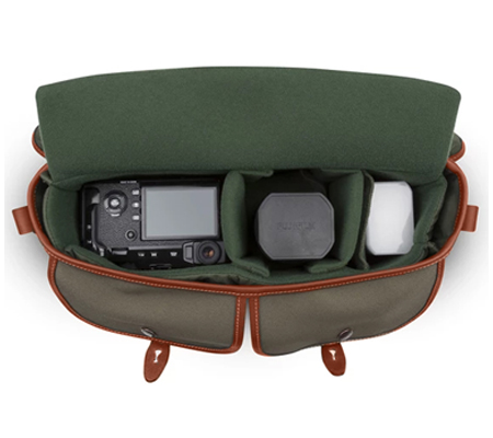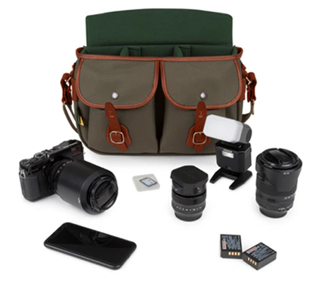 An upgraded version of our popular, Hadley Pro Camera Bag. Fits most DSLRs (without a battery grip) or almost any mirrorless camera and 2-4 small-to-medium sized lenses with accessories (inc 70-200mm lens not attached to the camera). Made in England with 3-layer waterproof fabric and real leather. REMOVABLE PADDED INSERT The flexible padded insert is made from dense, fabric covered, 'closed cell' foam and provides impact protection on all sides, including the lid. Like the bag itself it is flexible front-to-back to allow it to fit slightly bigger gear than its dimensions suggest. 2x vertical dividers and 2x horizontal flap dividers are included and can be attached anywhere inside with Velcro®. The padded insert can also be removed to turn the bag from a camera bag to a casual messenger bag in seconds. FRONT DUMP POCKETS The front dump pockets are perfect for cables, film, spare batteries and those little bits and bobs you want to keep separate, whilst providing great extra storage space. On the top-outside corner of each pocket is a pop-clip. Release this to expand the space available. Keep it closed to form a perfect place to clip pens, pencils etc. TOP HANDLE AND BACK POCKET An easy carry top handle is reinforced with fibreglass and has leather on the underside to allow you to pick up and carry the bag with comfort, without using the shoulder sling. On the back pocket the improved weatherproof zip helps protect important documents. The luggage trolley retainer strap is just below the opening to the back pocket. LUGGAGE TROLLEY STRAP The luggage trolley retainer strap lets you attach your camera bag safely to your suitcase when travelling through a busy airport or city. 'QRS' FRONT STRAPS The top-grain leather front straps have the 'Quick Release System' feature. Simply slide the straps up-and-off the brass clogballs at the top for quick and easy access. Once the leather softens and you become used to it there's a good chance you'll be able to open the bag one handed while wearing it. The buckles allow you to fine tune the 'fit' of the front pockets. You don't need to use the buckles to open the bag. REMOVABLE SHOULDER SLING The Hadley Pro 2020 features a shoulder sling that can be adjusted longer or shorter to suit your height and shooting style. It can also be completely and easily removed in seconds if you would prefer to carry the bag using only its top handle. It is made from shuttle woven polyester and top-grain leather with solid brass fixings. SCULPTED TOP FLAP The sculpted top flap helps prevent rain or snow getting into the main compartment. It is made of the same 3-layer waterproof fabric as the rest of the bag. DISCRETE AND SLIM The discrete styling of the Hadley Pro 2020 means that it doesn't look like a camera bag, which is ideal for travelling without drawing attention. The bag is naturally flexible and moulds to the body of the wearer. Its slim body makes it a great bag to weave through crowds with. ATTACH END POCKETS FOR EXTRA STORAGE AVEA 7 and AVEA 8 pockets can clip onto the strong leather side panels at either end of the bag. These can add storage or help with organisation to keep everything easily accessible when you need it. Shown in photo with an AVEA 8 pocket (and optional SP40 shoulder pad). HADLEY SMALL PRO VS HADLEY PRO 2020 The Hadley Pro 2020 is simply a bigger version of the Hadley Small Pro, sharing exactly the same features. The Hadley Small Pro is compatible with AVEA 7 End Pockets. The Hadley Pro 2020 is compatible with AVEA 7 and AVEA 8 end pockets. An example of the difference in size between the two camera bags; the Hadley Small Pro is capable of carrying a Canon 5D with a small to medium lens attached, plus a second column with two small lenses stacked on top of each other. The extra height and width of the Hadley Pro 2020 would let you have a third column where you could carry a 70-200mm lens as well.
