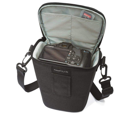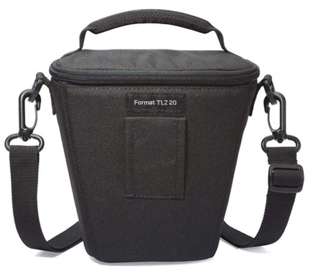 Get essential protection and fast access to your compact DSLR with this top loading shoulder bag that offers multiple carrying options. The sturdy and padded design with weather-resistant outer fabric provides essential protection from bumps, moisture and abrasion. Top loading construction with YKK zippers offers an easy way to grab your camera with a moment's notice. The Format TLZ 20 has three ways to carry: via removable/adjustable shoulder strap, padded grab handle or built-in belt loop. The TLZ 20 fits a compact DSLR with compact zoom lens attached (most 18-55mm), spare memory card, battery or other small accessories.