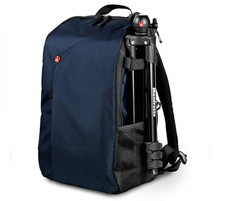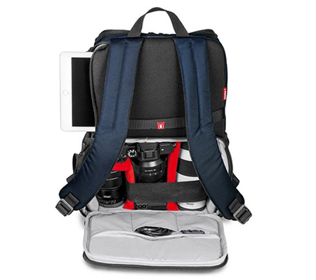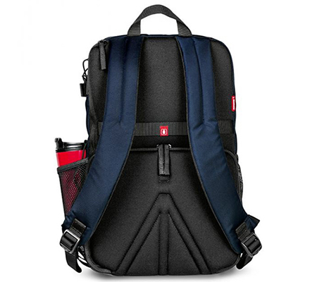 Comfortably carry your DJI Mavic Pro Drone or a small DSLR/mirrorless camera, up to four lenses, related accessories, and personal items with the blue NX CSC Camera/Drone Backpack from Manfrotto. Gear is easily accessed from the top or the back of the pack. Inside the lower, rear, zip compartment is a padded insert with flexible, touch-fastening dividers and straps for organizing equipment. The top compartment has organizational pockets and is primarily designed for personal stuff such as clothing and snacks, but can also accommodate photo-related items. In addition, there's a separate compartment for an iPad or small laptop.