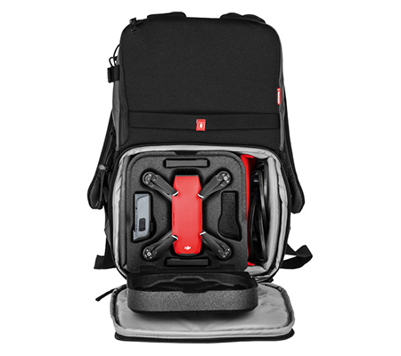 Comfortably carry your DJI Mavic Pro Drone or a small DSLR/mirrorless camera, up to four lenses, related accessories, and personal items with the gray NX CSC Camera/Drone Backpack from Manfrotto. Gear is easily accessed from the top or the back of the pack. Inside the lower, rear, zip compartment is a padded insert with flexible, touch-fastening dividers and straps for organizing equipment. The top compartment has organizational pockets and is primarily designed for personal stuff such as clothing and snacks, but can also accommodate photo-related items. In addition, there's a separate compartment for an iPad or small laptop.
