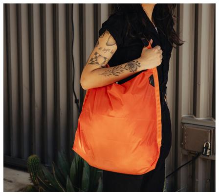 The zip closure prevents spills and also keeps sand and dirt out, which greatly increases the versatility of the Packable Tote—groceries, travel, baby, beach—you’ll never stop finding uses for this bag. Lucky for you, it’s built to last. The durable #5 UltraZip can withstand decades of use, thanks to proprietary abrasion-resistant thread. The beautiful, 100% recycled ripstop 70D nylon/poly shell is self-healing, meaning it has a special coating that will actively heal small scratches. It’s also water-resistant. The shoulder strap is constructed from high-strength nylon webbing with a soft sewn-in microfiber pad. Unlike dual-strap totes, the single strap makes this bag easier to grab, carry, and stow. Weighs a svelte 80g (2.8oz) and packs down to slip inside any pocket or bag. The integrated stuff sack doubles as an interior pocket when using the tote. Fair Trade Certified and 100% carbon neutral.