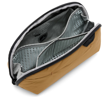 The little sibling of our original award-winning Wash Pouch, the Small Wash Pouch is a streamlined, yet full-featured toiletry bag designed for light packers or short trips where you just need to take the essentials. Small Wash Pouch—now available in a Peak Design exclusive Coyote X-Pac™ Ocean Edition fabric, made in the USA from 100% recycled fishing net—features the same unique materials and features as our larger version, but with fewer pockets and a slimmed-down, stow-anywhere size. Durable, weatherproof, easy-to-clean materials repel water and stains so your pouch can take a beating and will still look sparkling clean for years to come. A burly #8 weatherproof UltraZip allows the bag to open wide, giving you total visibility and access to your items. The UltraZip can withstand decades of use thanks to it's proprietary abrasion-resistant thread. Sits upright on a counter or hangs via a stowable aluminum hook. 4 internal TPU-coated nylon mesh pockets, an internal zip pocket, and a magnetically-sealed toothbrush pocket keep items organized and clean. Plus, all pockets can turn inside out for deep cleaning in case of spills. Fair Trade Certified and 100% carbon neutral.