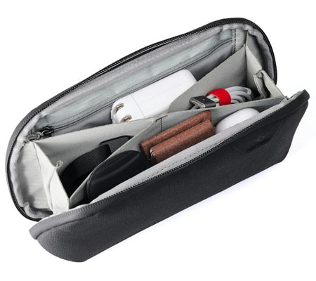 The Small Tech Pouch takes the award-winning design, utility, and aesthetics of our bestselling original Tech Pouch, and scales it all down to half-size. Small enough to stuff in any corner of any bag, yet impressively full-featured, the Small Tech Pouch is ideal for everyday essentials like cords, cards, batteries, and chargers (fits all Apple brick-style chargers).