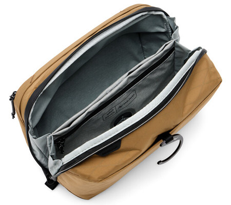 In designing our classic Wash Pouch we aimed to create a toiletry bag with the perfect balance between elegant simplicity and thoughtful functionality. Dopp kit, ditty bag, call it what you will—it’s one of the most essential and oft-used travel items you own—now available in a Peak Design exclusive Coyote X-Pac™ Ocean Edition fabric, made in the USA from 100% recycled fishing nets. Thanks to the use of durable, weatherproof, easy-to-clean materials that repel water and stains, Wash Pouch can take a beating and will still look sparkling clean for years to come. A burly #8 weatherproof UltraZip allows the bag to open up extra wide, giving you total visibility and access to your items. The UltraZip can withstand decades of use thanks to it's proprietary abrasion-resistant thread. Sits upright on a counter or hangs via a stowable aluminum hook. A network of internal TPU-coated nylon mesh pockets, internal zippered pocket, and a magnetically-sealed toothbrush pocket keep items organized and clean. Plus, all pockets can turn inside out for deep cleaning in case of spills. External zip pocket for a razor or other item. Fair Trade Certified and 100% carbon neutral.