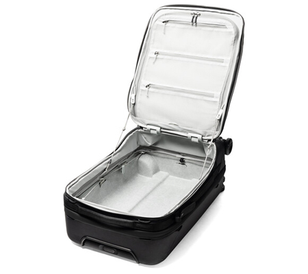 It starts with the innovative SlimDrive™ trolley handle, built from rigid, flat, and lightweight carbon fiber. SlimDrive™ eliminates wasted space inside the bag while also eliminating the bending/twisting that occurs in traditional 3-section aluminum handles. It's a driving experience lightyears ahead of other rollers. Roller Pro's hybrid construction (polycarbonate internal shell + Versa Shell™ outer fabric) offers hard-sided protection with the organizational flexibility of soft-sided luggage—a combination you'll find nowhere else. Same goes for the unique drawbridge opening, which gives you total access while taking up half the footprint of the traditional clamshell design. Pack and unpack in tighter spaces, and visualize your stuff in a more compact format. An exterior EDC pocket allows quick stowage/access for items like passports, glasses, and headphones in the security line and in-flight, and a protected laptop sleeve magnetically seals on its own to prevent accidental spillage. An external Cord Hook™ carry system allows you to lash items to the outside of the bag, giving you that critical extra hand when dashing through the terminal. Inside, a Cord Hook™ retention system keeps stuff secured faster and more elegantly than traditional compression straps. Brilliant details are everywhere: weatherproof UltraZips™ that all lock together*, a laser-cut Hypalon ID tag, padded grab handles, and secret AirTag and stash pockets.