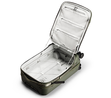 It starts with the innovative SlimDrive™ trolley handle, built from rigid, flat, and lightweight carbon fiber. SlimDrive™ eliminates wasted space inside the bag while also eliminating the bending/twisting that occurs in traditional 3-section aluminum handles. It's a driving experience lightyears ahead of other rollers. Roller Pro's hybrid construction (polycarbonate internal shell + Versa Shell™ outer fabric) offers hard-sided protection with the organizational flexibility of soft-sided luggage—a combination you'll find nowhere else. Same goes for the unique drawbridge opening, which gives you total access while taking up half the footprint of the traditional clamshell design. Pack and unpack in tighter spaces, and visualize your stuff in a more compact format. An exterior EDC pocket allows quick stowage/access for items like passports, glasses, and headphones in the security line and in-flight, and a protected laptop sleeve magnetically seals on its own to prevent accidental spillage. An external Cord Hook™ carry system allows you to lash items to the outside of the bag, giving you that critical extra hand when dashing through the terminal. Inside, a Cord Hook™ retention system keeps stuff secured faster and more elegantly than traditional compression straps. Brilliant details are everywhere: weatherproof UltraZips™ that all lock together*, a laser-cut Hypalon ID tag, padded grab handles, and secret AirTag and stash pockets.