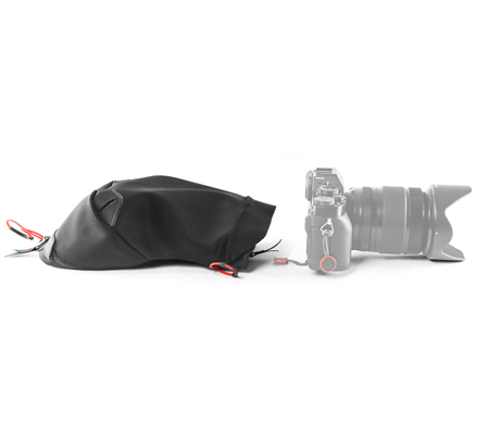 When nature comes knocking in the form of water, snow, and dust, protect your camera and attached lens with the Shell Form-Fitting Rain and Dust Cover in black from Peak Design. Made from a unique stretchable fabric, the medium Shell conforms to the shape of your gear and also guards against abrasion. It has a waterproof membrane to help keep your equipment dry. Use your Shell with an optional, separately sold Capture Camera Clip or any Peak Design strap.