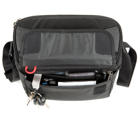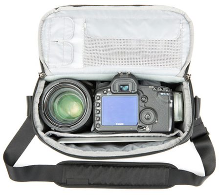 A structured bag designed for accessibility, the StoryTeller 10 from Think Tank is a shoulder bag designed to hold one DSLR or mirrorless camera body along with up to four standard/telephoto lenses, a 10" tablet, and other accessories. The Flip-Top lid and zippered closure provides quick and easy access to the main interior compartment, which features removable dividers and a dedicated pocket for holding a tablet. An additional zippered valuables pocket and expandable front pocket can be used to hold additional accessories while expandable side pockets accommodate a water bottle and two dedicated memory card pockets can be used to separate empty and full cards.