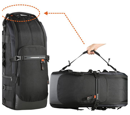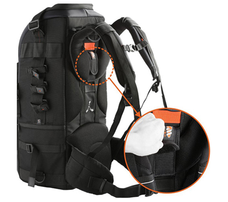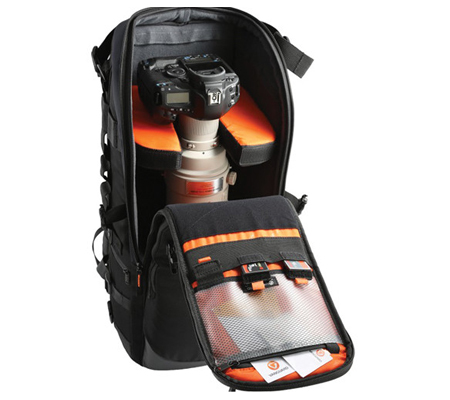 Vanguard's Quovio 66 Backpack is specifically designed to carry a super telephoto lens up to 600mm (f/4.0) and some 800mm (f/5.6) lenses attached to a DSLR. This bag offers great protection with a thick cradle to securely hold your telephoto lens and camera in place while maintaining a slim and sleek exterior. Your gear can be quickly accessed from the main front opening. The harness strap can be adjusted to fit different torso sizes, ensuring optimized comfort. You can bring your tripod along by attaching it to either side of the bag. This bag also features accessory pockets and a tablet compartment.