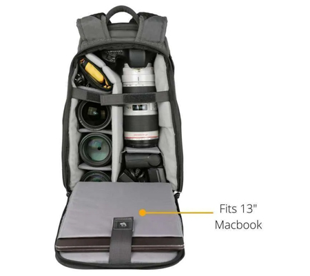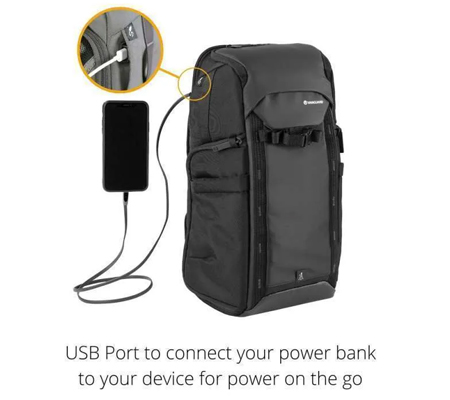 The VEO ADAPTOR R44 BK backpack does everything you'd expect from a camera bag in a sleek modern design, but also includes a USB interface port to allow you to set it up to charge your camera or smartphone on the go.