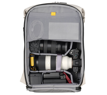 The top daypack compartment (295mm wide x 150mm deep x 210mm tall) is ideal for packing the personal kit you need for a day out, or more camera kit. It can also be opened to allow top access to the complete backpack.