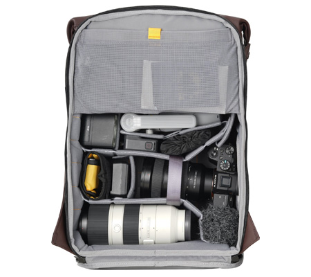 The main compartment features a smart divider made of EVA material that securely protects your gear. It can efficiently store one or two mirrorless cameras, as well as multiple lenses and accessories. Furthermore, by removing the divider, it can be used as an everyday bag, and its flexible design allows it to be freely reshaped to suit any situation.