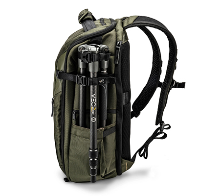 You can also carry a VEO tripod on the side using the strap and the expanding lower pocket, which can be used for a bottle or other item when a tripod isn’t needed. Alternatively you can sacrifice a lens or two to fit a travel tripod up to 42cm/16.5 inches (such as the VEO 2X Travel Tripod) inside the backpack.