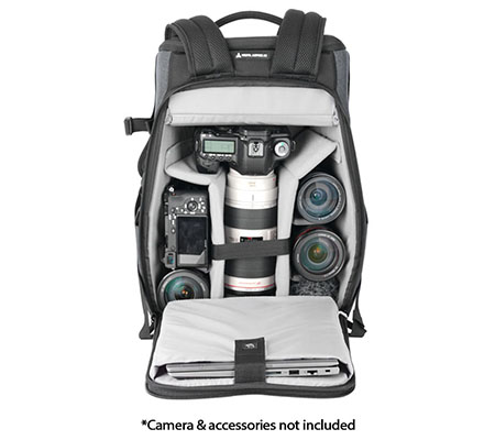 Access to the full camera kit is from the rear for maximum security, but the day-pack section above can be removed to allow the backpack to be set up for fast top access to your camera.