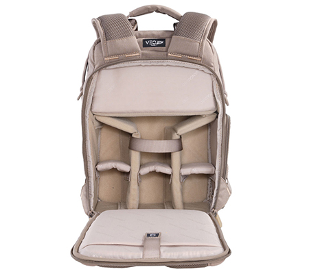 The VEO Range T37M BG Tactical Backpack is designed for photographers looking to carry a mirrorless camera, 4-5 lenses, a 9.7” tablet, and a travel tripod. The bag offers maximum versatility with a customizable interior and exterior webbing. There is also a removable daypack section at the top of the backpack for personal items or an additional camera kit. Alternatively, simply remove the interior dividers, and you have a comfortable everyday or hiking backpack.