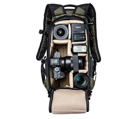 The streamlined silhouette is combined with robust protection. The bag backpack easily protect a Camera SLR / Bridge / Compact digital / Hybrid with lens set, 2-4 Lenses additional (up to 70-200 mm f2.8), a Flash and accessories. The initial distribution of the separators is formed as a bag back to the upper third being accessible via the opening zipper. However, separators can easily be configured for full use of the inside of the bag and easy access from above for apparatus picture with a fixed or a telephoto Spotting . Match your equipment with a specific configuration of the Bag , using the many dividers and multiple access points so that your equipment is always exactly where you need it!