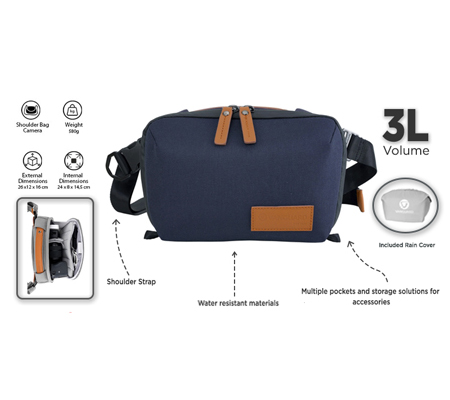 The VEO CITY CB24 is the smallest, lightest cross body bag at 3 litres, and includes two adjustable smart dividers so you can configure the interior for your photography or vlogging kit. It's perfect for a mirrorless camera with an extra lens (up to 28-70mm f3.5-5.6) and a host of other clever storage solutions for your kit.