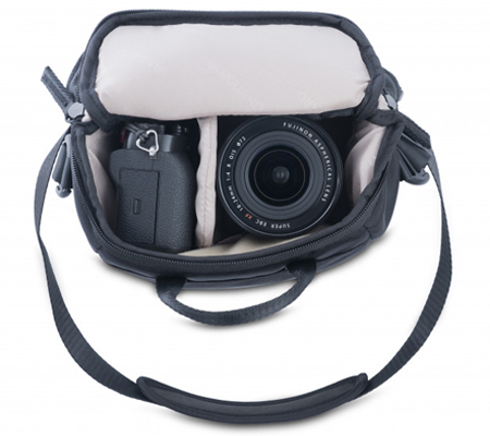 Mirrorless/CSC/Hybrid Camera sizes vary slightly, so to ensure a snug fit for all models VEO GO 15M is tailored to offer an amply sized internal compartment with a sturdy removable divider that - when set in place - secures the camera snuggly according to its size, and sections off an additional compartment for extra gear. Two external pockets are included for all other essentials such as memory cards, a lens cap, and smartphone. And they are conveniently located exactly where you need them, either secured in the zippered compartment or in the secret front pocket.