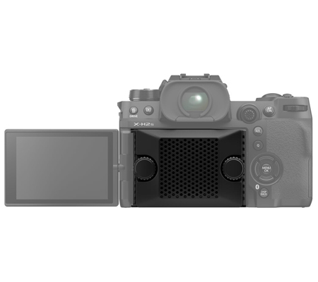 The fan can be fitted to the rear of the camera body without a cable and supplies power, extending continuous video recording time at high temperature, and eliminating concerns of heat-related camera shutdown.
