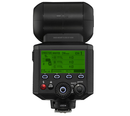 EF-X500 can be used in multi-flash setup to freely control light on a subject and background for a creative result. TTL lighting control is available with single flash and also in the multi-flash setup, so that you can start shooting without having to make cumbersome adjustments to light output.