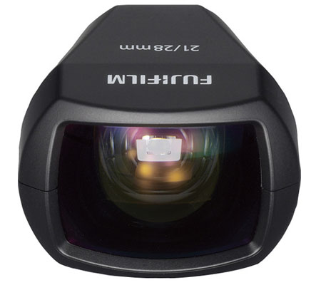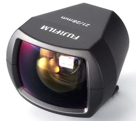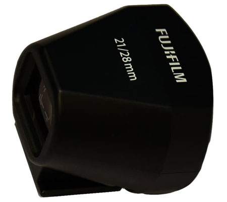 For shooters who prefer eye-level viewing, the VF-X21 External Optical Viewfinder is a dedicated accessory to the Fujifilm X70 digital camera. This auxiliary finder attaches to the camera's accessory shoe and incorporates bright frame lines to match the 28mm field of view of the camera's built-in lens, as well as a 21mm field of view to support the use of the optional WCL-X70 Wide Conversion Lens.