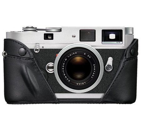 Beautiful, protective, and well-crafted, the black leatherĀ Leica Eveready Case M with Large Frontis designed to fit most Leica M series analog cameras. The case is constructed from soft Nappa leather with enhanced seams and an embossed Leica logo. Two distinctly contoured grip bulges at the front and rear of the base provide ergonomic support for more comfortable camera holding. The base section has two bulges on the base section that are shaped to fit your thumb and middle finger. Camera strap lugs are easily accessible for use with your camera's original strap.