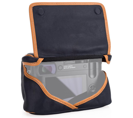 For use with select Leica cameras, this midnight blue Ettas Pouch protects the camera body and mounted lens when not in use. It is made from a soft, coated canvas material to guard against bumps and scratches.