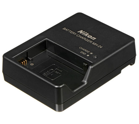 The Nikon MH-24 Quick Charger rapidly recharges an EN-EL14 or EN-EL14a li-ion battery.
