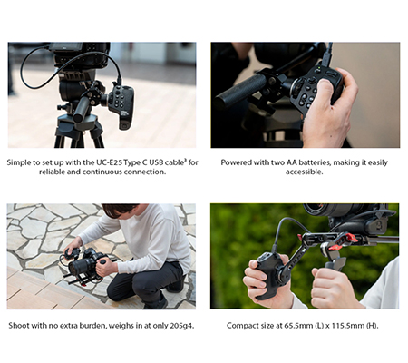 Expand your shooting potential with the MC-N10 Remote Grip, a remote grip which can be attached to essential videography accessories such as the gimbal, tripod pan bar, slider or shoulder rig handle via a rosette adapter (ARRI standard) to easily access control settings. The MC-N10 Remote Grip weighs approximately at 205g and measures 65.5mm (L) x 115.5mm (H) x 73.5mm (D), ensuring minimal weight addition to your equipment. Set up quickly with a wired connection via the Type-C USB cable for reliable and continuous connection. Ever ready even in the harshest weather conditions, the MC-N10 remote grip is capable of withstanding cold weather conditions down to -10° C, while its dust- and drip-resistant performance seals out any unwanted elements.