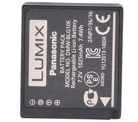 The DMW-BLG10E Li-ion Battery for Select LUMIX Cameras from Panasonic produces 7.2V and has a capacity of 1025mAh. This battery is ID secured, and it's compatible with the Lumix DMC-GF6, DMC-GX7, DMC-ZS100, GX85, and DMC-LX100 cameras.